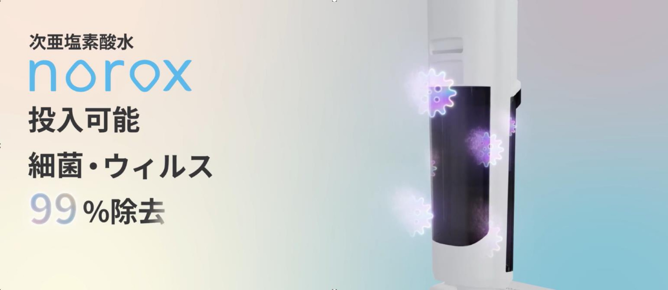 noroxを投入することで、細菌・ウイルスを99%除去できるので、水道水で利用する場合と比べ、より高い除菌力を発揮します。