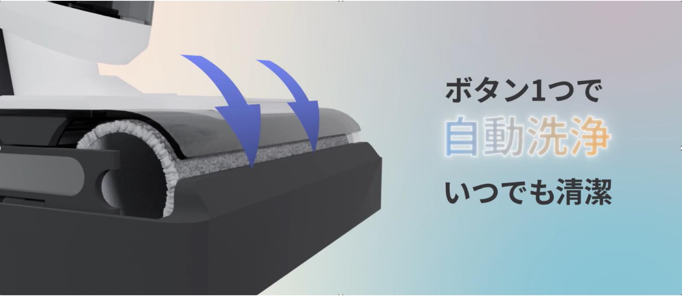 充電台にセットしボタンをワンタッチで自動洗浄が可能。