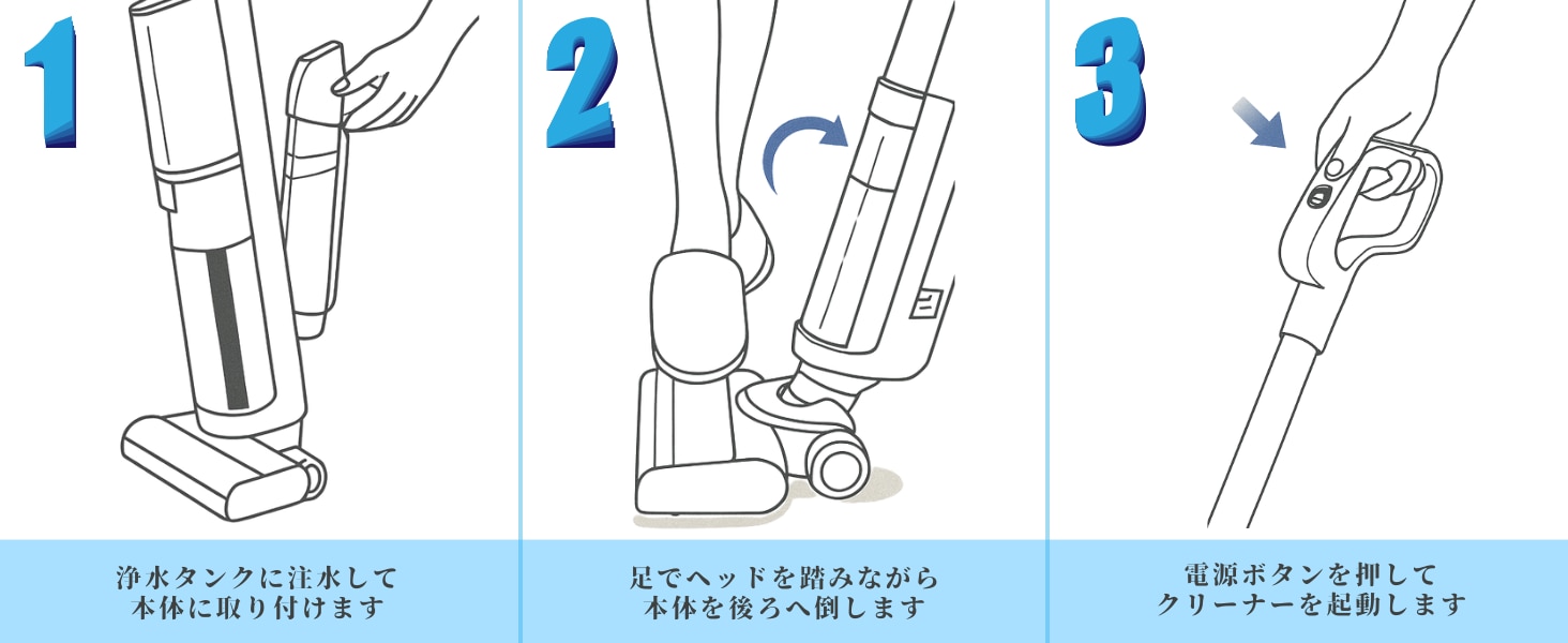 アタッチメントの付け替え不要で、乾湿両用で使えます。